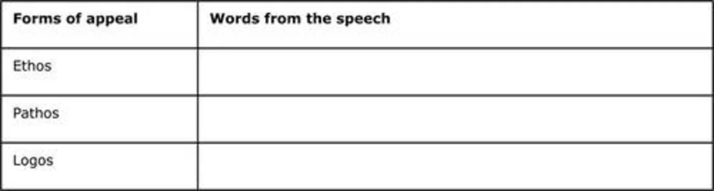 2. Forms of appeal: Find examples of each form of appeal from the speech?