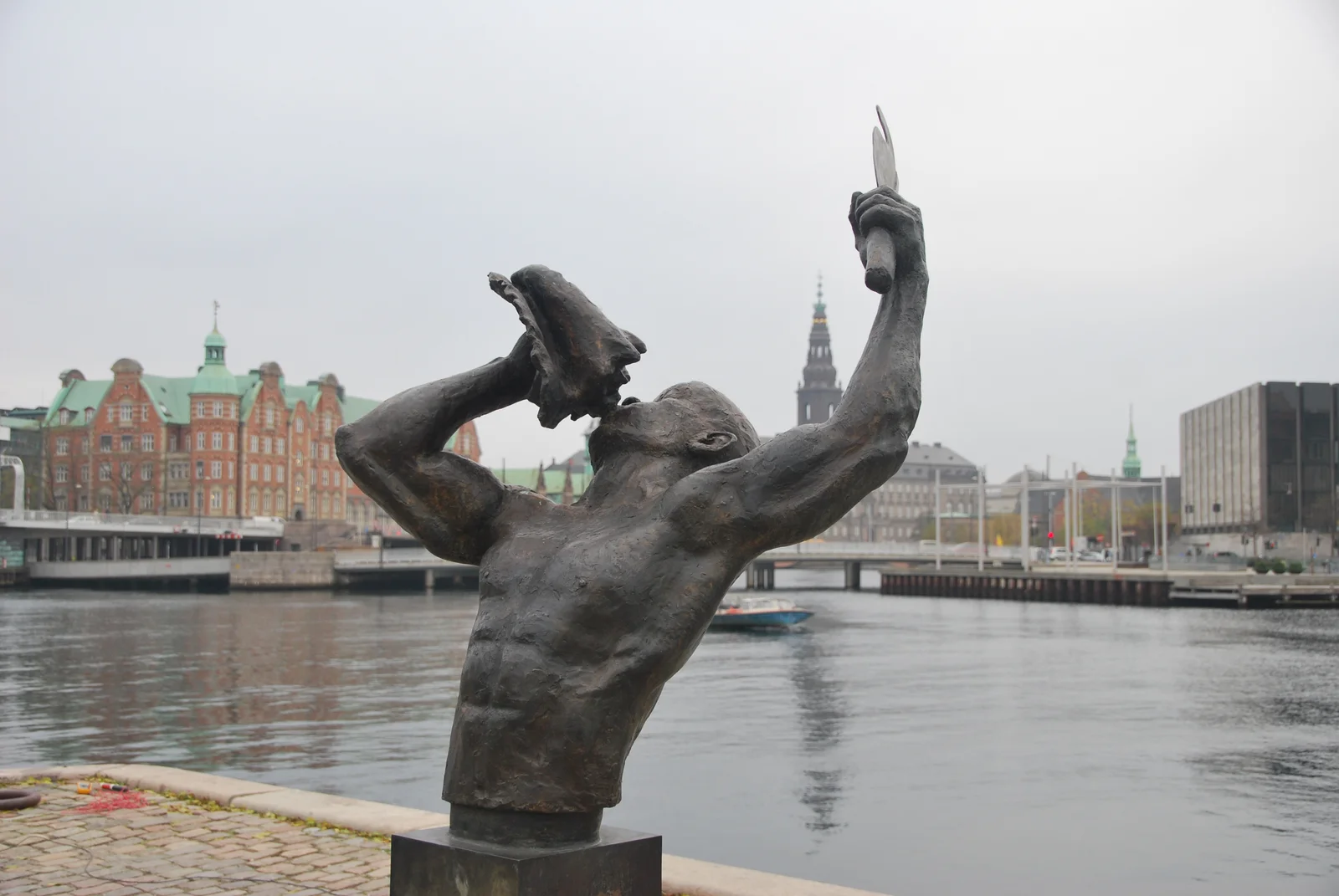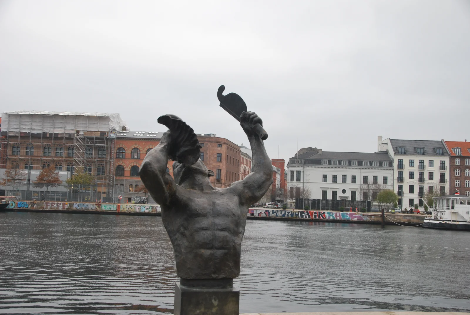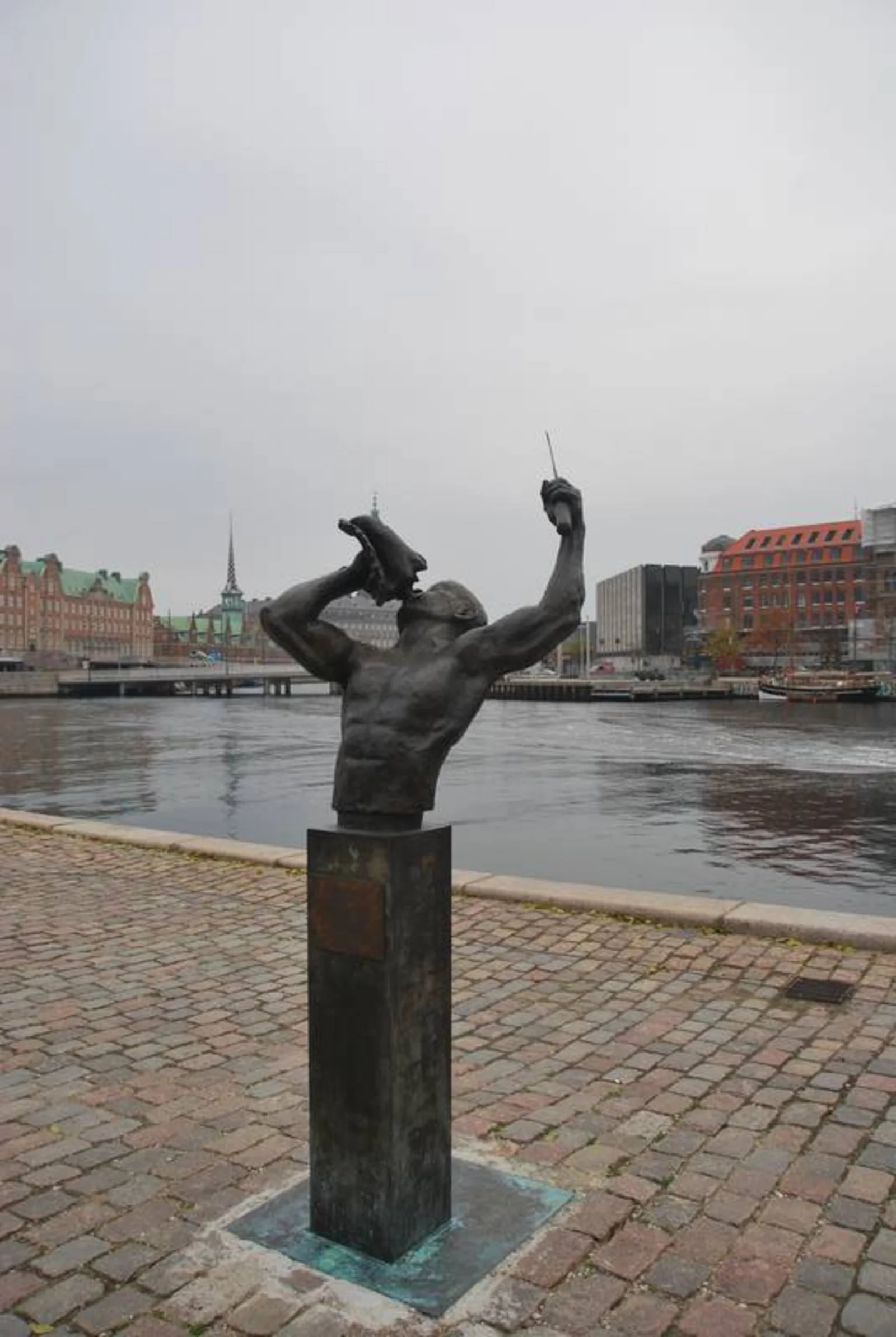 Kildeintroduktion: Uden at få den store opmærksomhed blev statuen, Freedom, midt under COVID-19 nedlukningen i foråret 2020 indviet. Skulpturen er det første officielle mindesmærke over Danmarks fortid som kolonimagt og slavenation. Skulpturen er skabt af den ghanesiske billedkunstner Bright Bimpong. Der står i forvejen tre kopier på de vestindiske øer, og der er et ønske om, at der også skal stå endnu en statue i Ghana, hvor de danske forter lå, og hvor de slavegjorte blev udskibet fra. Statuen står på kajen ved Eigtveds Pakhus, hvor centraladministrationen (staten) i dag har sine møde-, konference- og repræsentationslokaler. Befolkningen på US Virgin Islands (de vestindiske øer) forærede skulpturen som en folkegave til Danmark i forbindelse med 100-året for salget af øerne til USA. Værket symboliserer slavernes oprør og kamp for frihed fra den danske kolonimagt. Skulpturens overkrop er slynget tilbage, mens manden blæser i en konkylie. I den venstre hånd har han en sukkermachete. Konkylieblæseren er et symbol på oprøret, der førte til de slavegjortes frihed. Da de slavegjorte tudede i konkylierne var det et signal til oprør og en kamp for frihed.