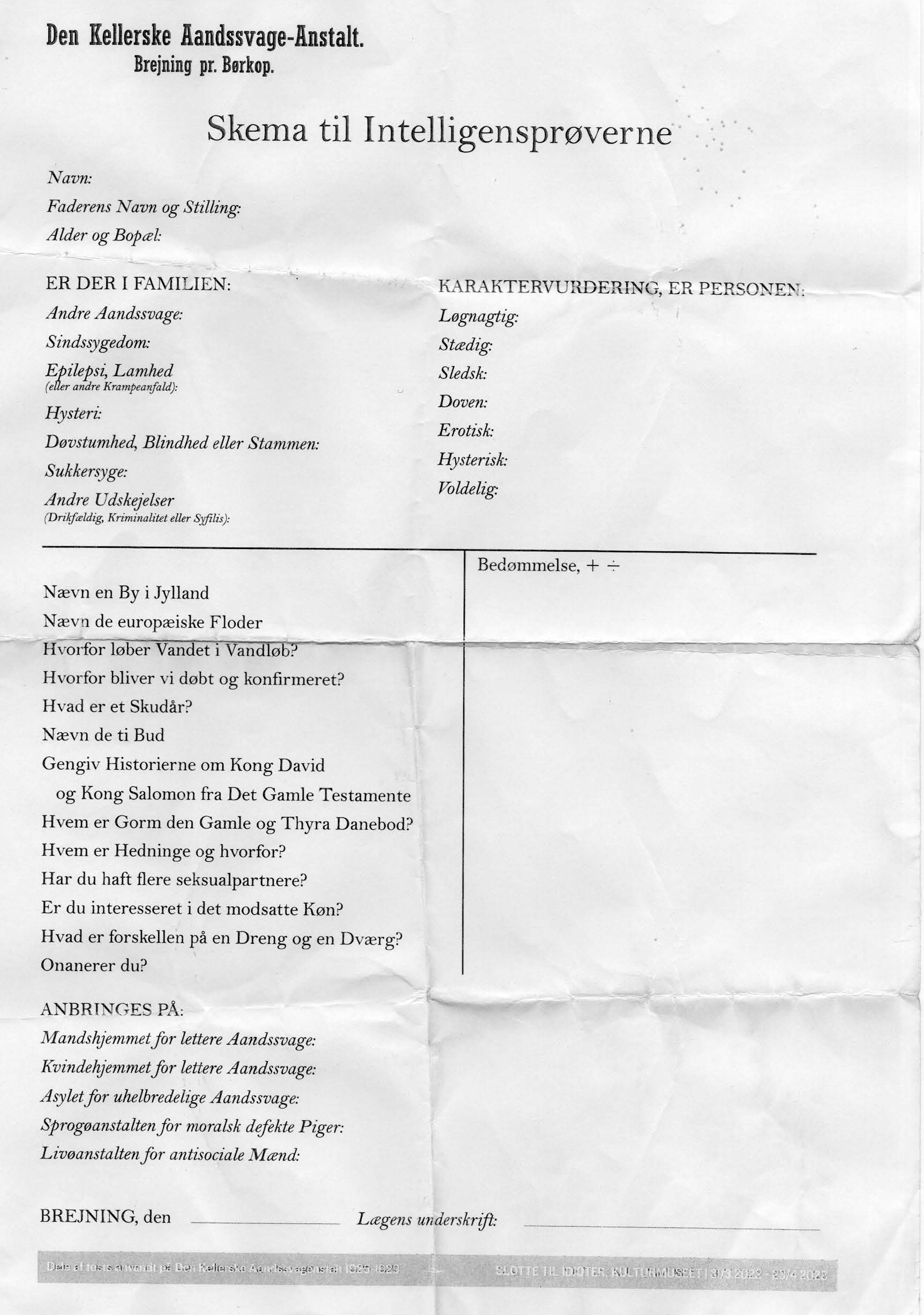 Hans Otto Wildenskov: ”Dansk Åndssvageforsorg i fremgang eller tilbagegang?”, som udkom i Nyt Tidsskrift for Abnormvæsenet, 1927. (Kilde)