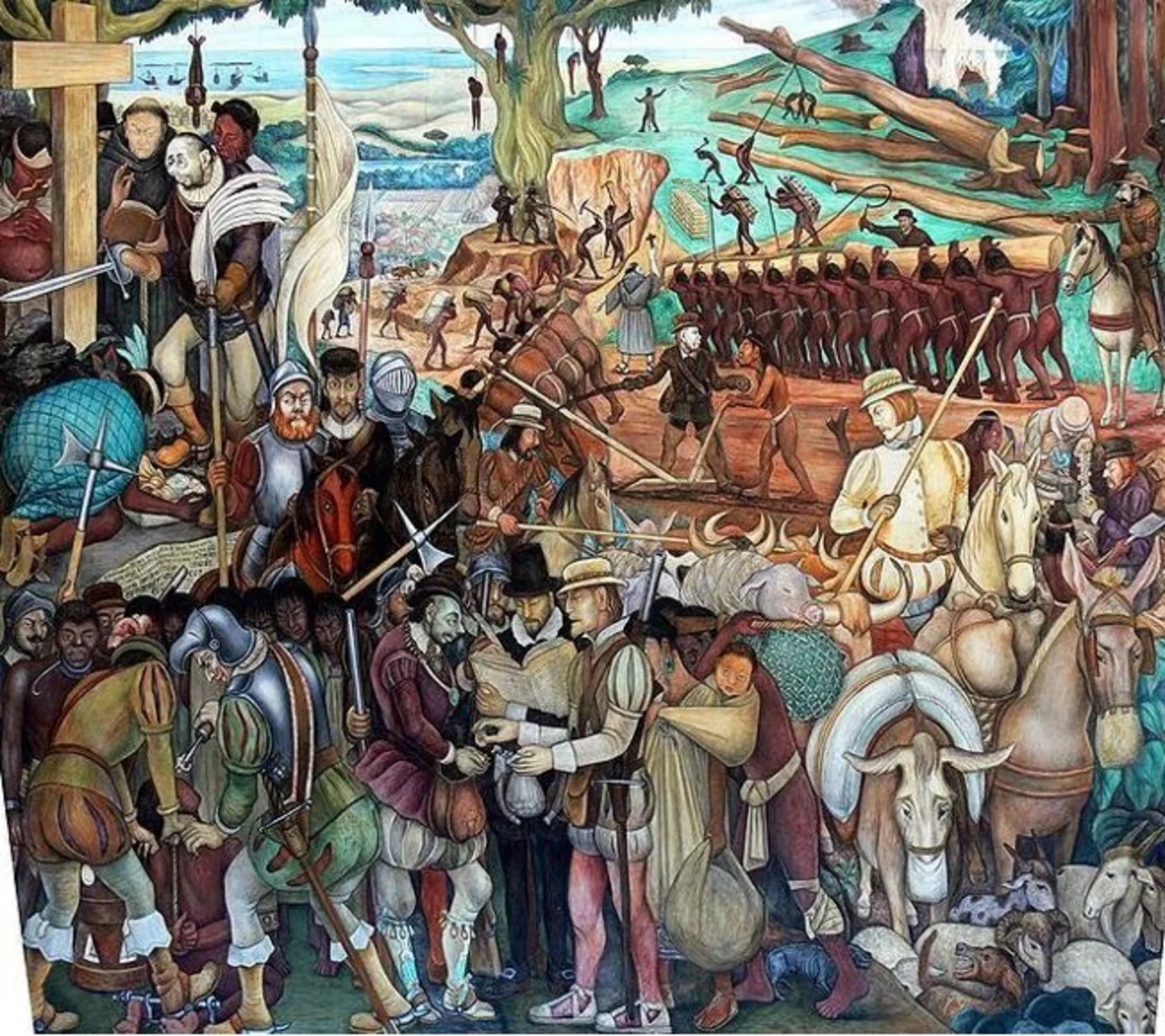 Den mexicanske, marxistiske, ateistiske kunstner Diego Riveras vægmaleri hænger på det nationale palads i Mexico City. Den viser hans fortolkning af den spanske kolonisering af Mexico. Rivera var del af den nationale vækkelse i Mexico, der i 1920’erne og frem malede vægmalerier med politiske budskaber, der især var centreret omkring at fremhæve de indfødtes rolle i Mexicos historie.