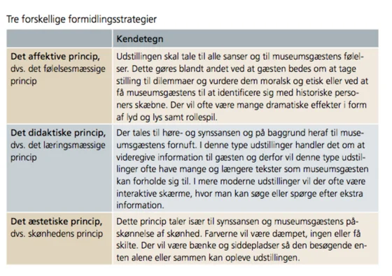 - Læs hvilke typer formidlingsstrategier, der findes (se boks i højre side) og tag herefter et valg om hvilket type museum, I ønsker at udarbejde.