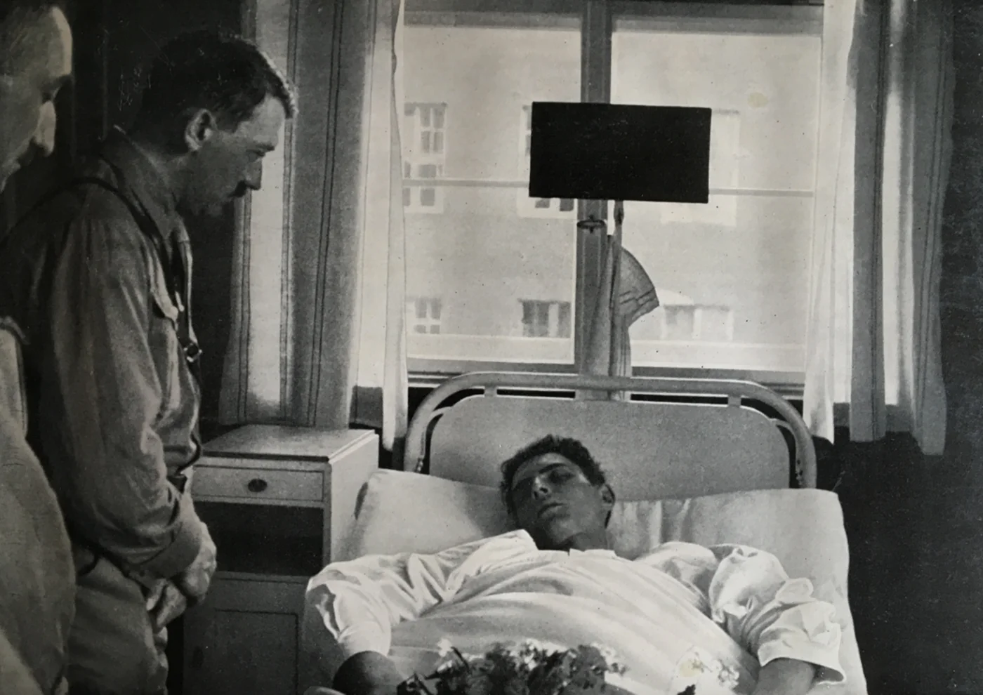 Introduktion: Dette fotografi blev taget af Heinrich Hoffmann (1885-1957) i 1931. Det indgik senere i samlealbummet Deutschland erwacht, der udkom i slutningen af 1933. Den ledsagende billedtekst har som overskrift (i dansk oversættelse): "Faldet for Tysklands genopstandelse". Billedteksten oplyser desuden, at den døde i hospitalssengen er en SS-mand, der er blevet "myrdet af kommunisterne".