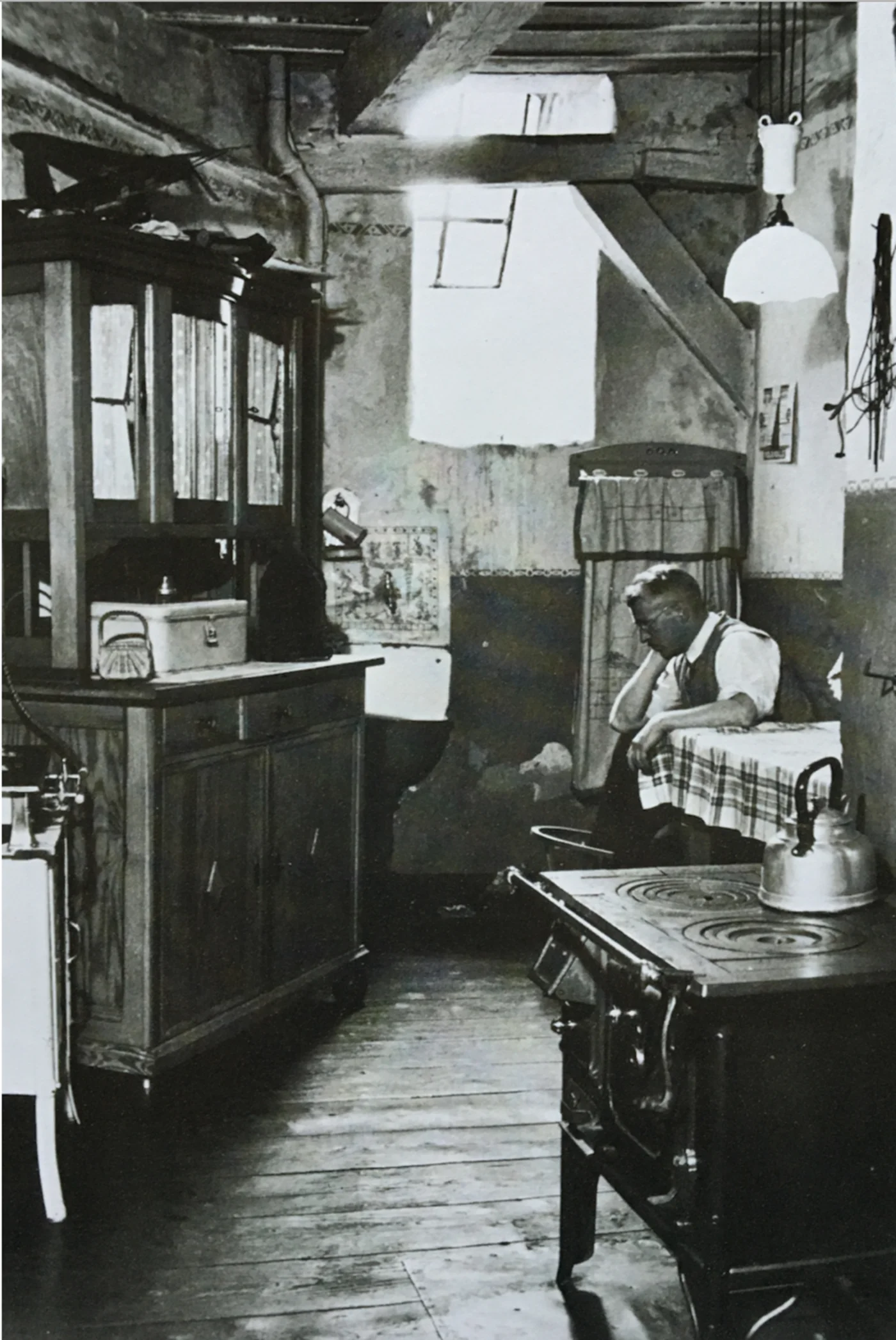 Introduktion: Den tyske fotograf Walter Ballhause (1911-1991) udgav i 1932 en række billeder med titlen ”En dag i den arbejdsløse Karl Döhlers liv”. Döhler havde tidligere været låsesmed. Billederne blev offentliggjort som billede 5 ud af 22 i billedserien ”En ud af millioner” i tidsskriftet Kuckuck. Den originale billedtekst lyder: "Familien Döhlers liv afspejler sig i den fugtige køkkendunst. Der kommer kun lys ind gennem det lille vindue, men en anden bolig koster 40 til 50 mark."
