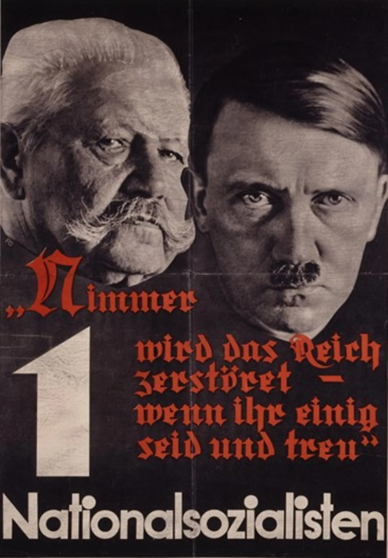 Introduktion: I oversættelse lyder teksten “Aldrig vil riget blive ødelagt – hvis I er enige og tro”. Strofen henviser til digtet Frühlingsgruss an das Vaterland fra 1814. Plakatens ophavsmand er ukendt. Plakaten måler i original 117,5 gange 83 cm.