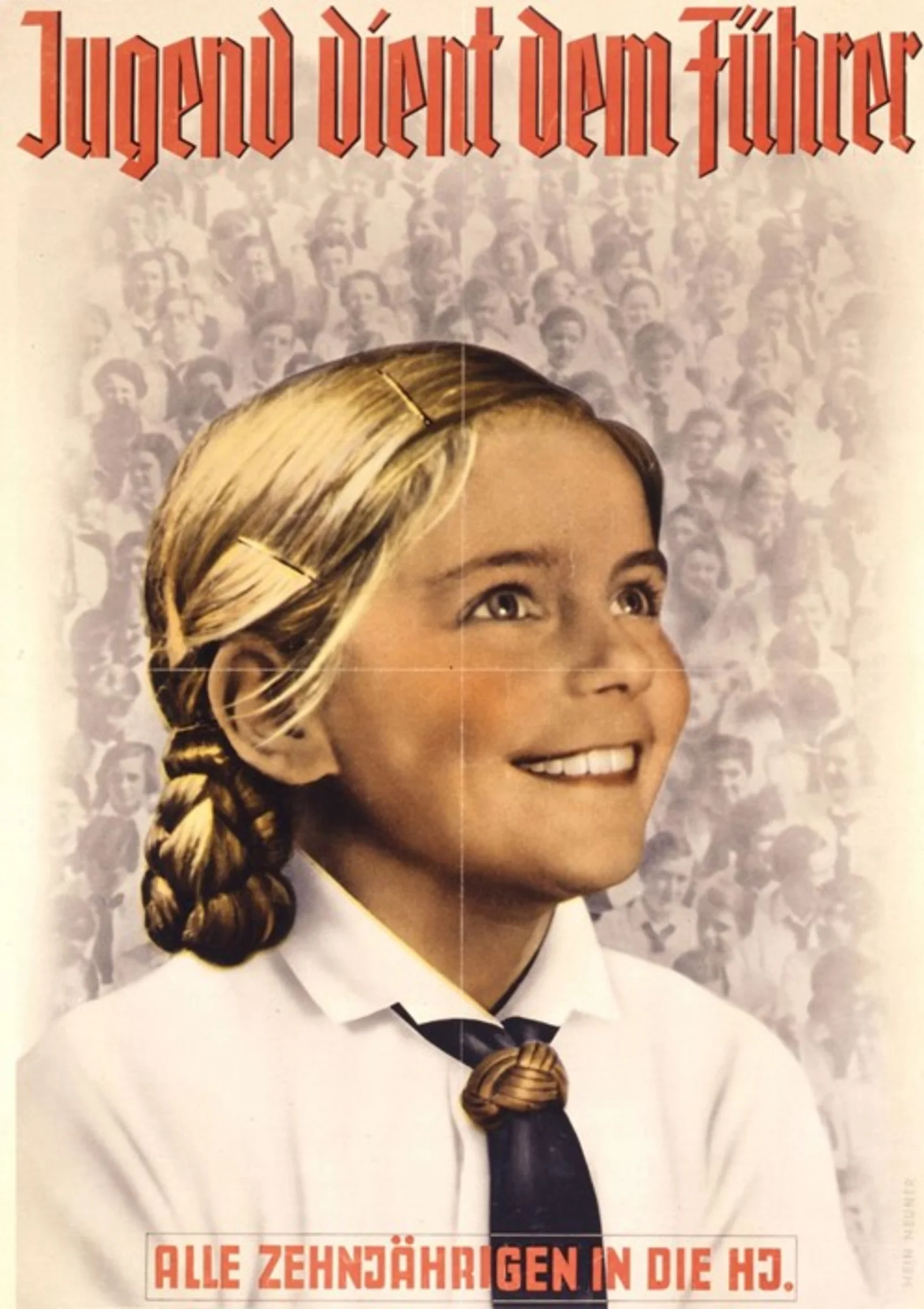 Introduktion: Denne hverveplakat til Hitler-Jugend blev tegnet af den uafhængige grafiker Hein Neuner (1910-1984) i 1939. Teksten på plakaten lyder i oversættelse: ”Ungdommen tjener Føreren. Alle tiårige ind i HJ”. Plakaten måler i original 85,6 gange 58,9 centimeter.