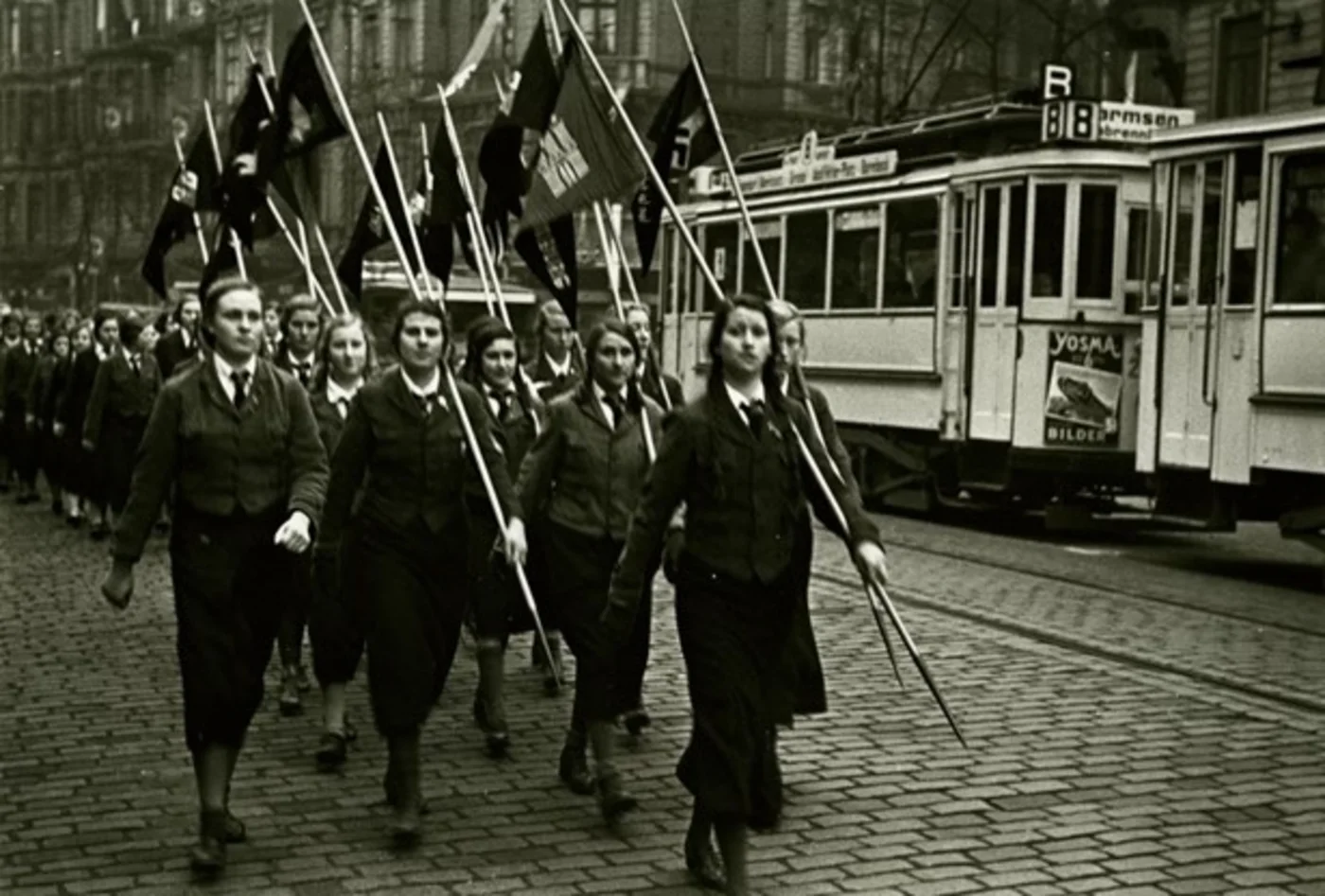 Introduktion: Fotografiet er taget af Joseph Schorer (1894-1946), der fra 1922 arbejdede som uafhængig fotograf i Hamborg. Hans hovedarbejdsgiver var lokalavisen Hamburger Tageblatt. På grund af sin negative holdning til det nazistiske styre var Schorer ikke medlem af NSDAP, og i 1936 blev hans kontrakt med Hamburger Tageblatt ophævet. Mange af Schorers fotografier blev ikke offentliggjort i samtiden og befinder sig i dag i forskellige arkiver. Fotografiet af BDM-marchen er fra Deutsches Historisches Museums arkiv og indgår i dag i museets opslag om Bund Deutscher Mädel på internetportalen Lebendiges Museum Online.