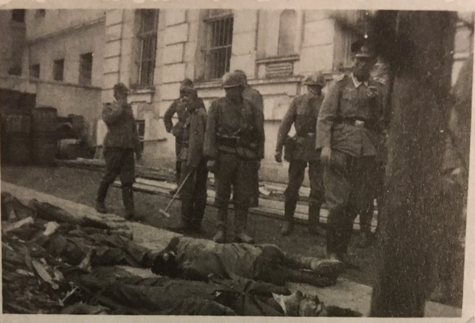 Introduktion: Fotografiet fra Tarnopol er en del af en serie på i alt fem fotografier, som en lokal ukrainsk amatørfotograf tog den 5. juli 1941. Det viser tyske soldater, der betragter nogle af de jødiske ofre for pogromen. Dette og de øvrige fotografier indgik i de to Wehrmachtudstillinger 1995-1999 og 2001-2004.