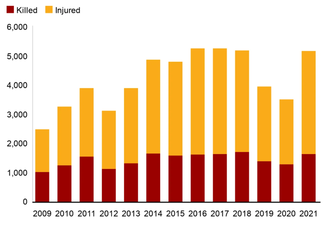 Figuren viser dræbte ("Killed") og sårede ("Injured").