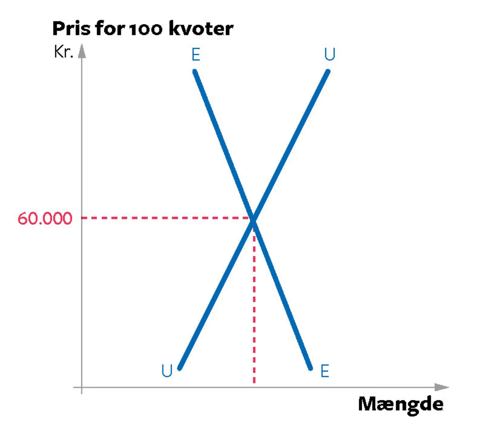 - Begge virksomheder opnår altså en økonomisk gevinst ved kvotehandlen, og samfundet (EU) opnår netop den begrænsning af CO2-udledningen, man ønsker – i dette eksempel hvor meget mindre CO2-udledning?