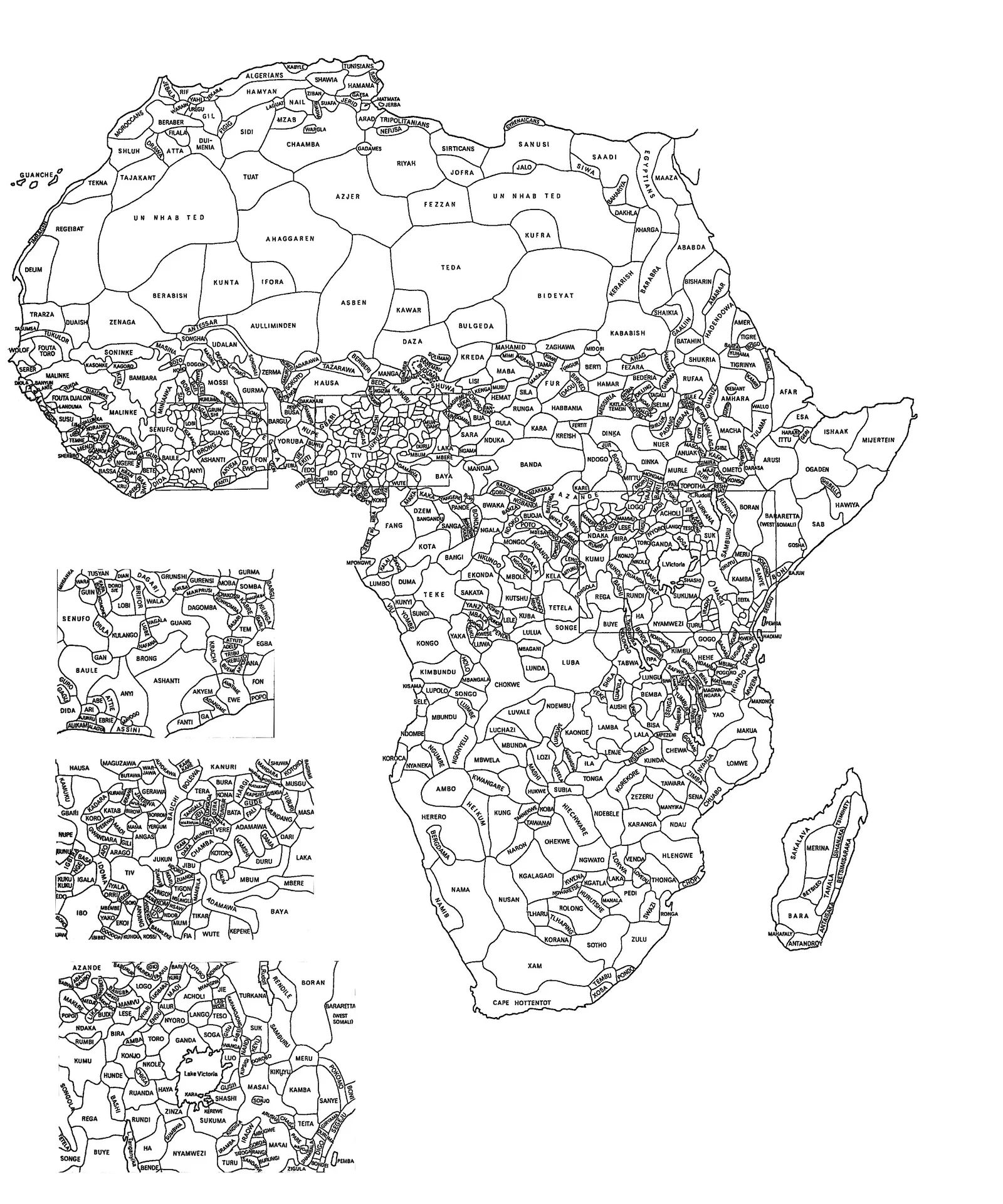 - På kortet til højre kan du se de ca. 800 stammer/etniske grupper, der findes i Afrika. De er placeret i Afrikas 54 stater. Hvor mange stammer/etniske grupper er der i gennemsnit pr. afrikansk stat?