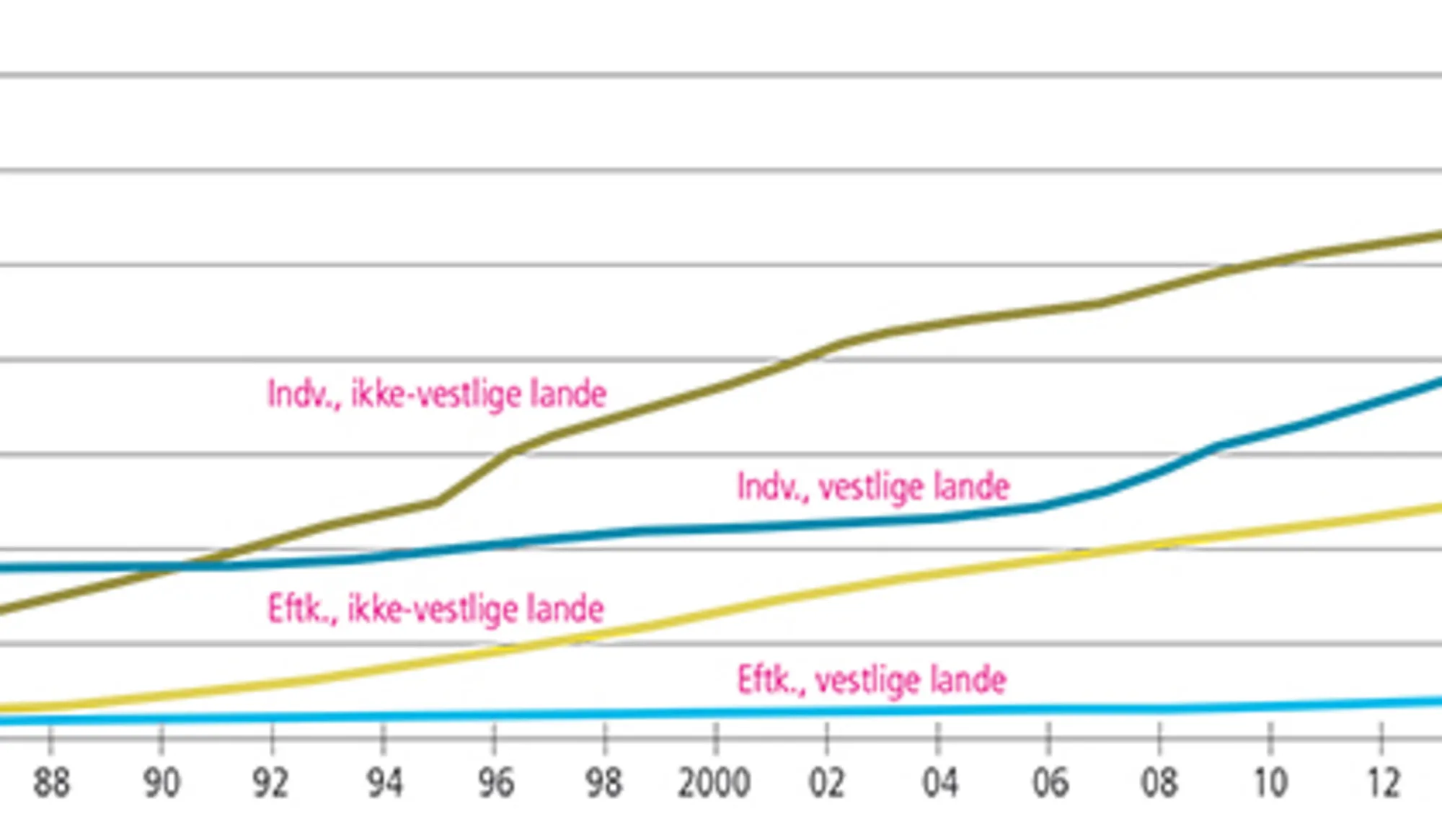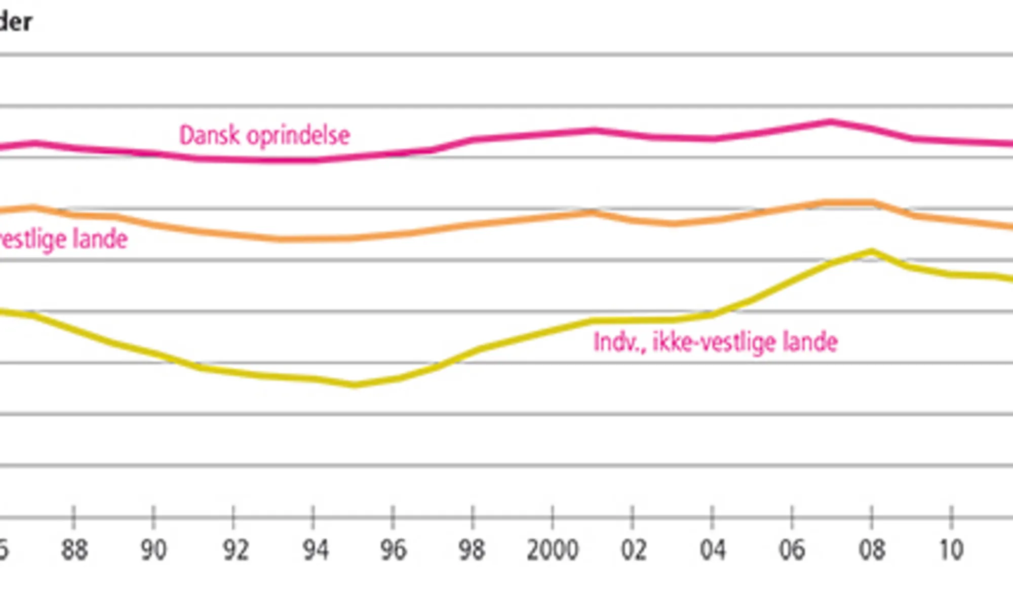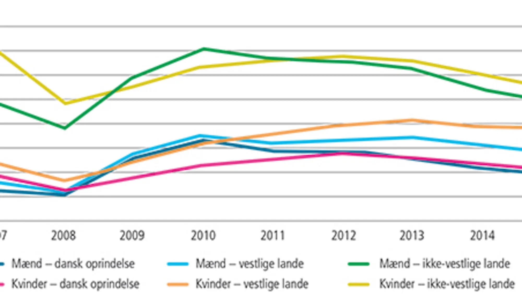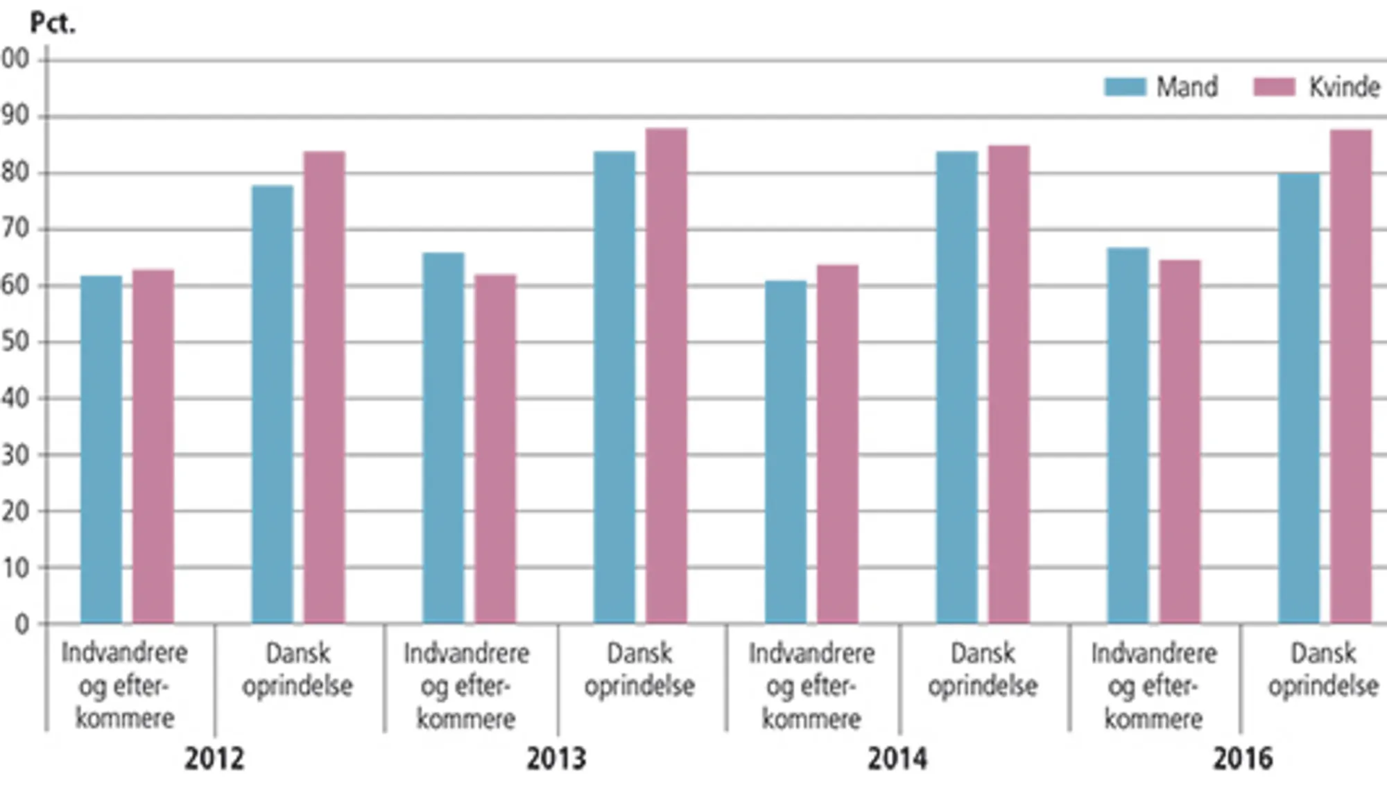 - 4.1 Beskæftigelsesfrekvenser blandt 16-64-årige indvandrere fra henholdsvis vestlige og ikke-vestlig