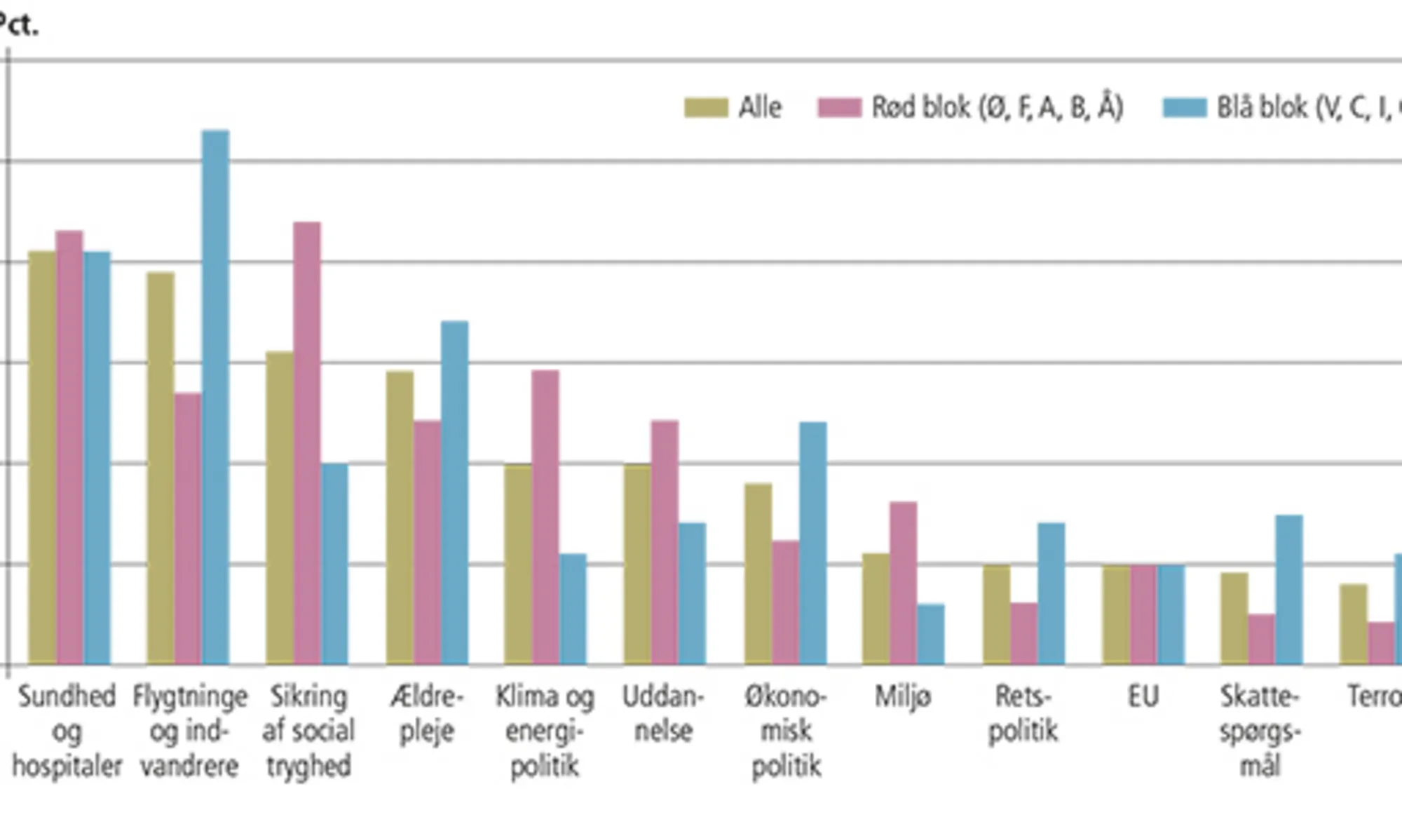 - 2.1 Vælgernes politiske dagsorden i 2017 fordelt på rød og blå blok. Procent