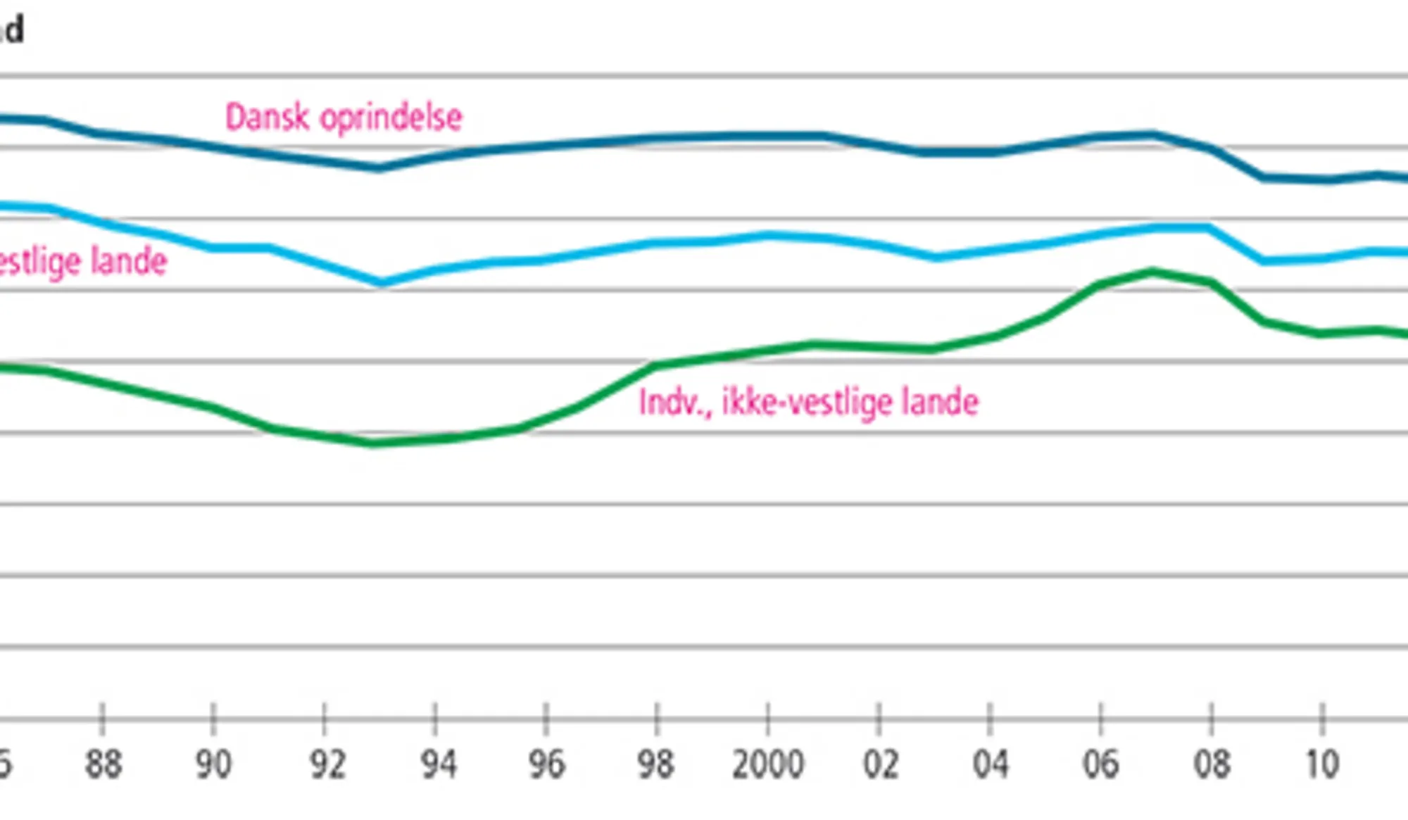 - 4.0 Arbejdsløsheden blandt 16-64-årige indvandrere fra henholdsvis ikke-vestlige lande, vestlige lan