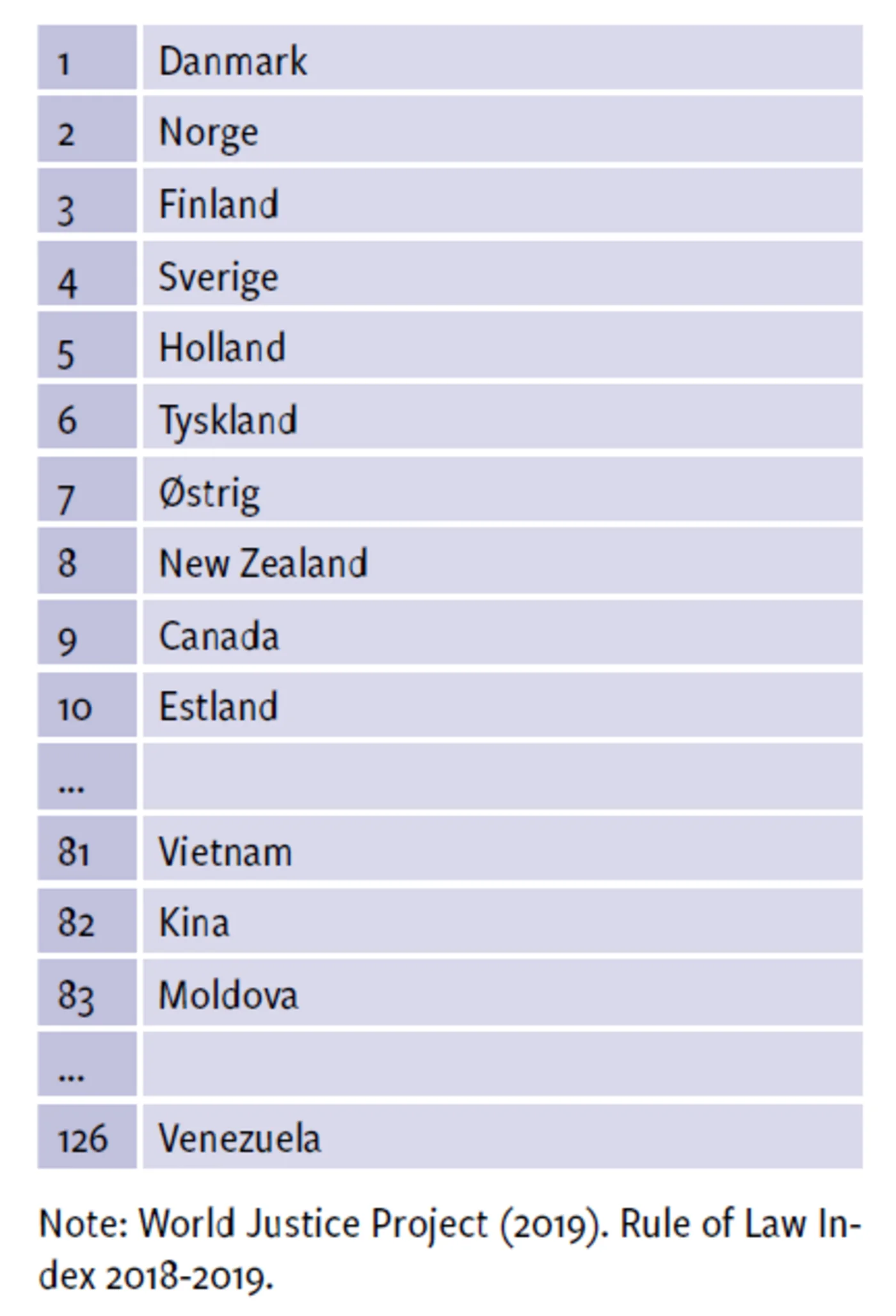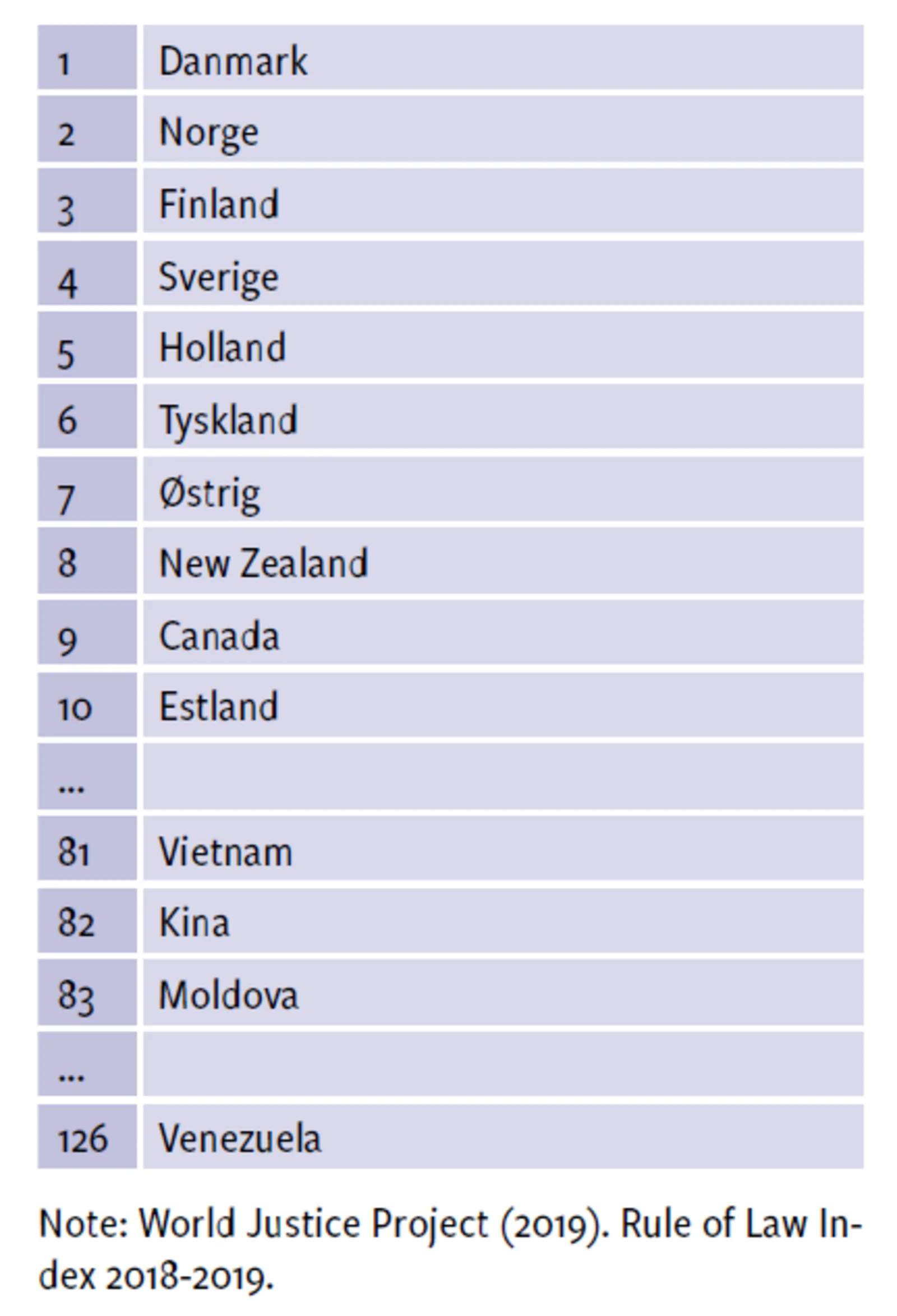 4) Diskutér, hvorfor Danmark klarer sig så godt i rule of law-indekset.