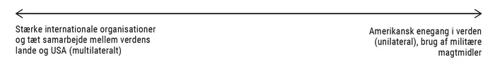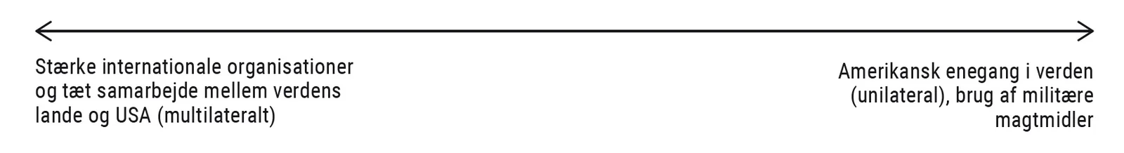 - Diskuter i en gruppe, hvorvidt den sikkerheds- og udenrigspolitik som USA fører, er præget af enten isolationisme eller internationalisme. I forbindelse med jeres diskussion kan det være en god ide at anvende figur 4.10 fra bogen.