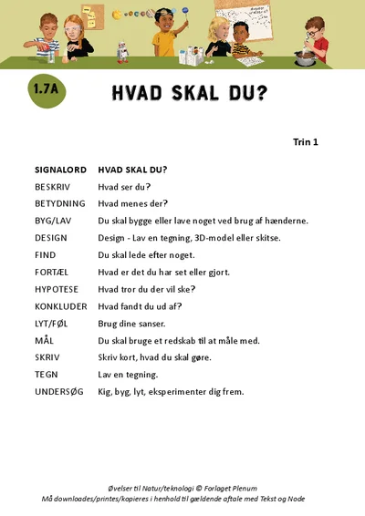 Denne aktivitet hjælper eleverne med at koble typiske signalord i naturfag med relevante handlingssætninger. Eleverne får trænet deres forståelse for, hvad de enkelte signalord betyder i praksis, og hvordan de kan omsættes til handling.