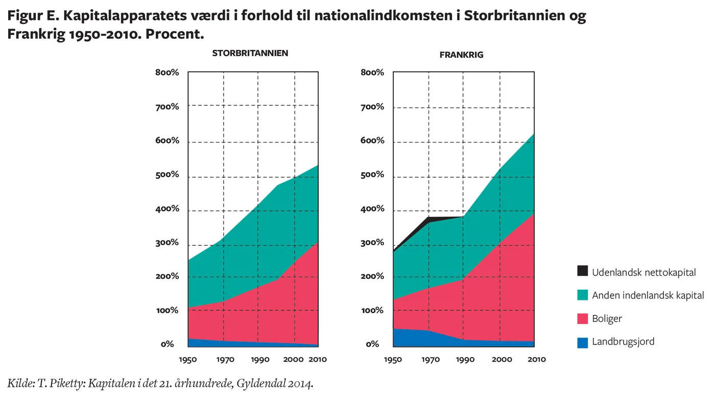Kilde: T. Piketty: Kapitalen i det 21. århundrede, Gyldendal 2014
