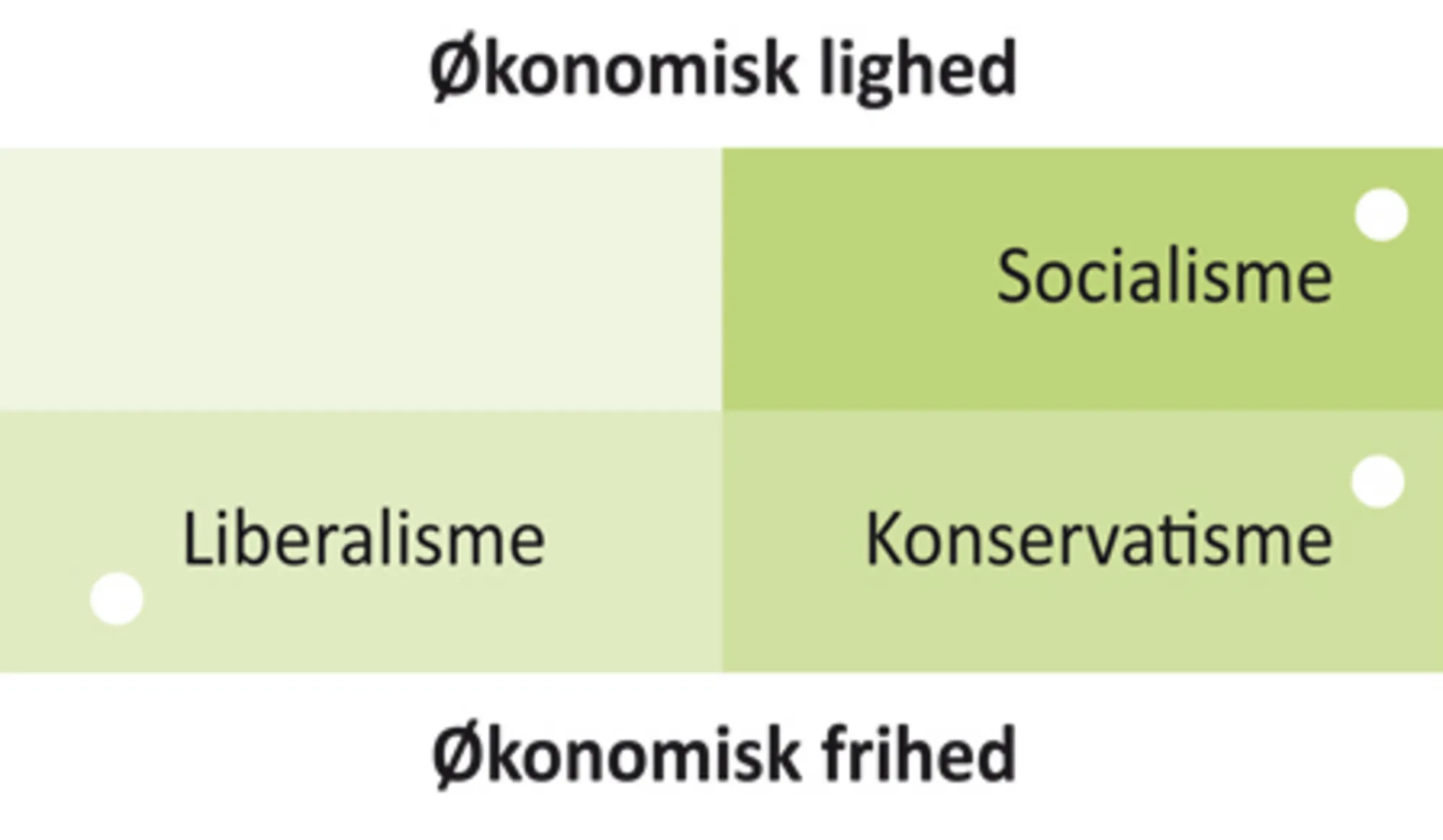 - Figur 1.10 Ideologiernes holdning til stat, frihed og lighed