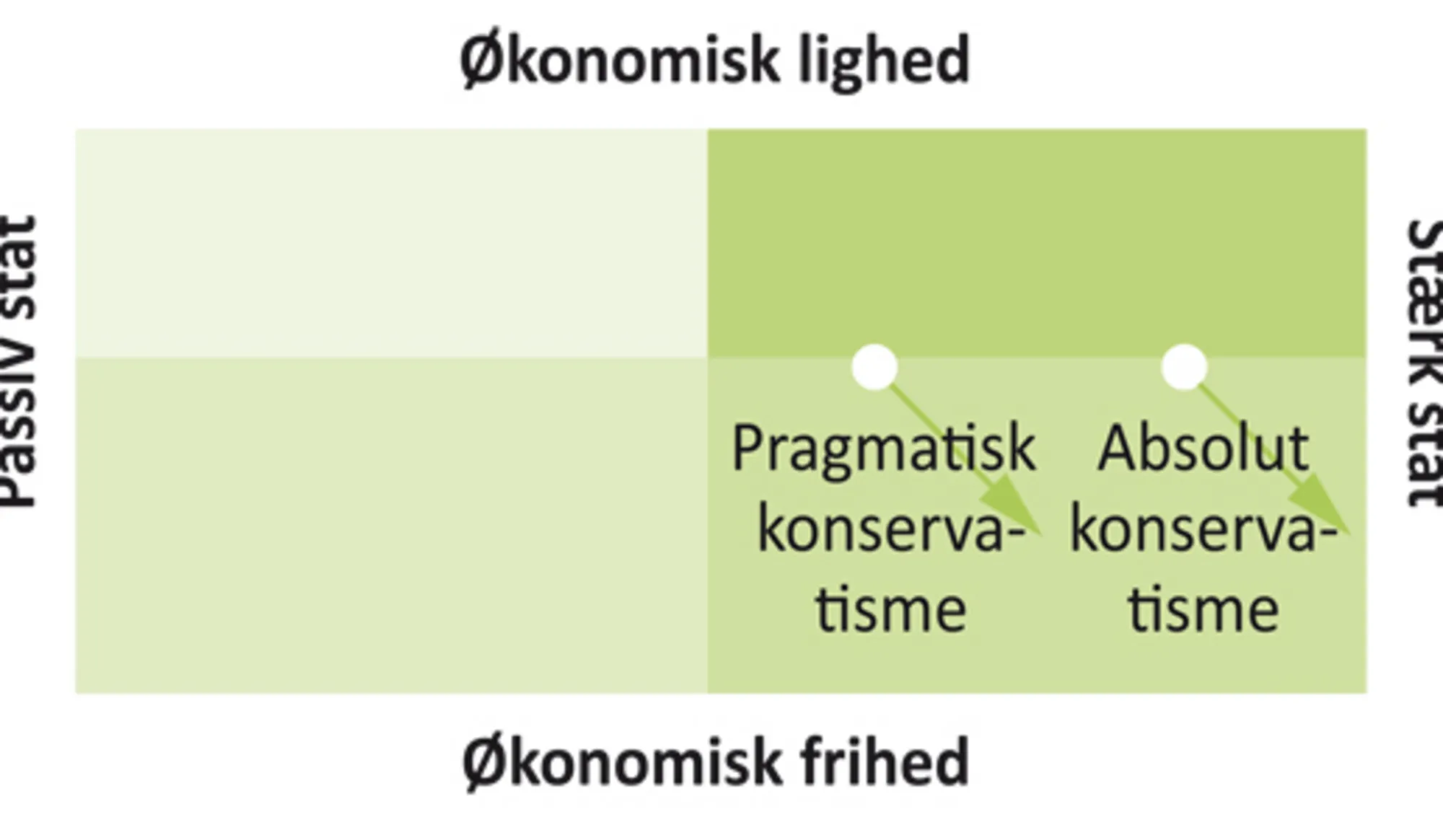 - Figur 3.1 Pragmatisk og absolut konservatisme: Stat, frihed og lighed
