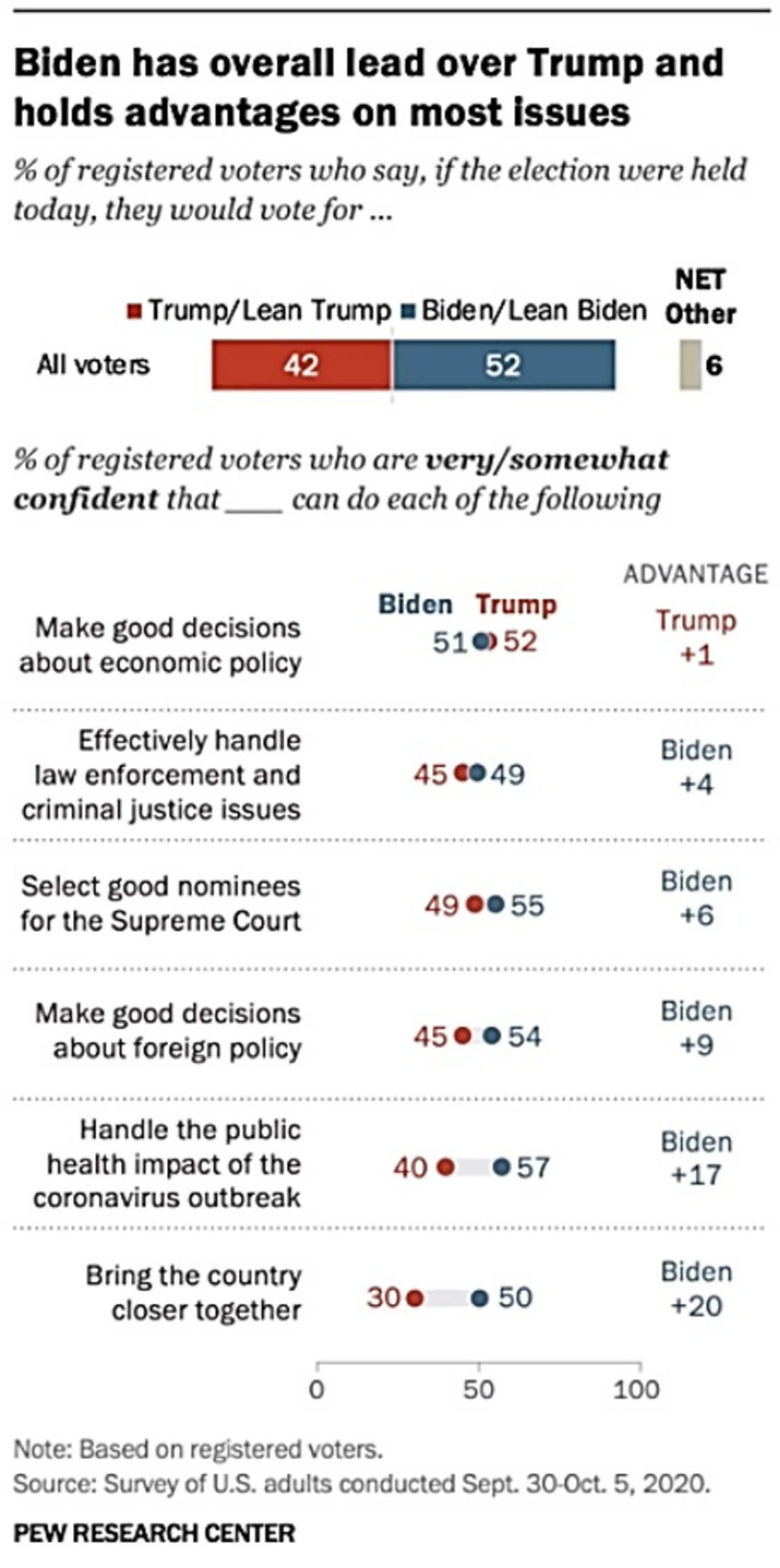 - I hvilke issues i nedenstående figur 1 står Trump og Biden stærkest? Hvor er der især stor forskel? Hvordan kan Trump og Biden bruge figur 1 i deres valgkamp i 2020? Er de nævnte issues i figur 1 positions-issues eller valens-issues?