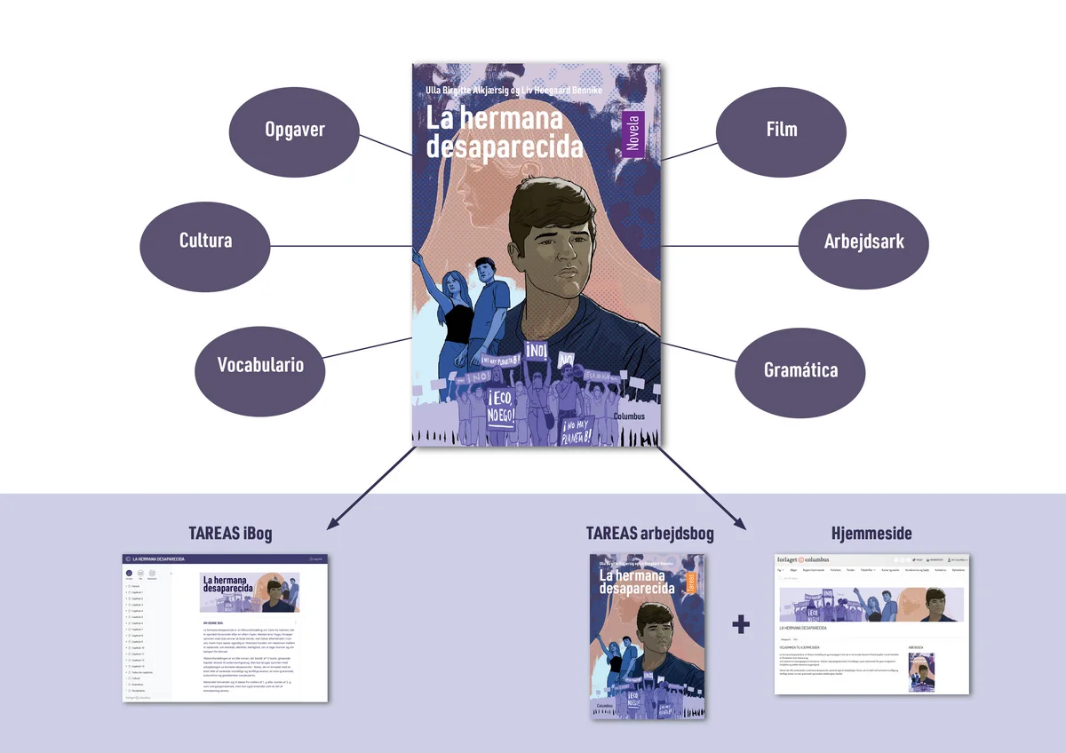 Systemet La hermana desaparecida består af La hermana desaparecida – Novela, en fiktionsfortælling på 13 korte, gloserede kapitler skrevet til danske gymnasieelever, og La hermana desaparecida – Tareas.