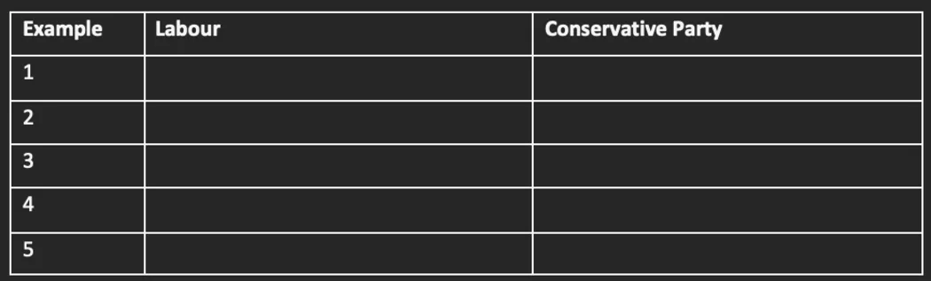 Task 8.1 Compare: The Labour and Conservative Party 1979 Election Manifestos